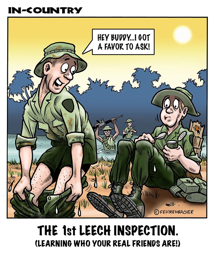 Phil enlisted in the Army in 1965 where he served for years in Vietnam.  He became a graphic designer and has worked for the state of Oregon for 26 years.  He retired in 2003 and started the Cartoon "In-Country".  The cartoons reflect his experiences during his tour of duty in South Vietnam.